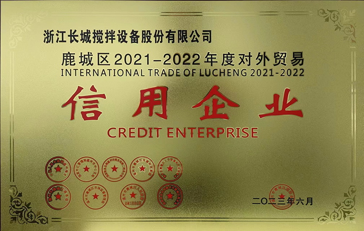 与此同时我司在今年6月份,还荣获“鹿城区2021-2022年度对外贸易信用企业”。新冠疫情过后,公司将进一步扩大海外市场,提高长城品牌在国际搅拌市场的影响力,打造属于世界的开云手机站登录入口!